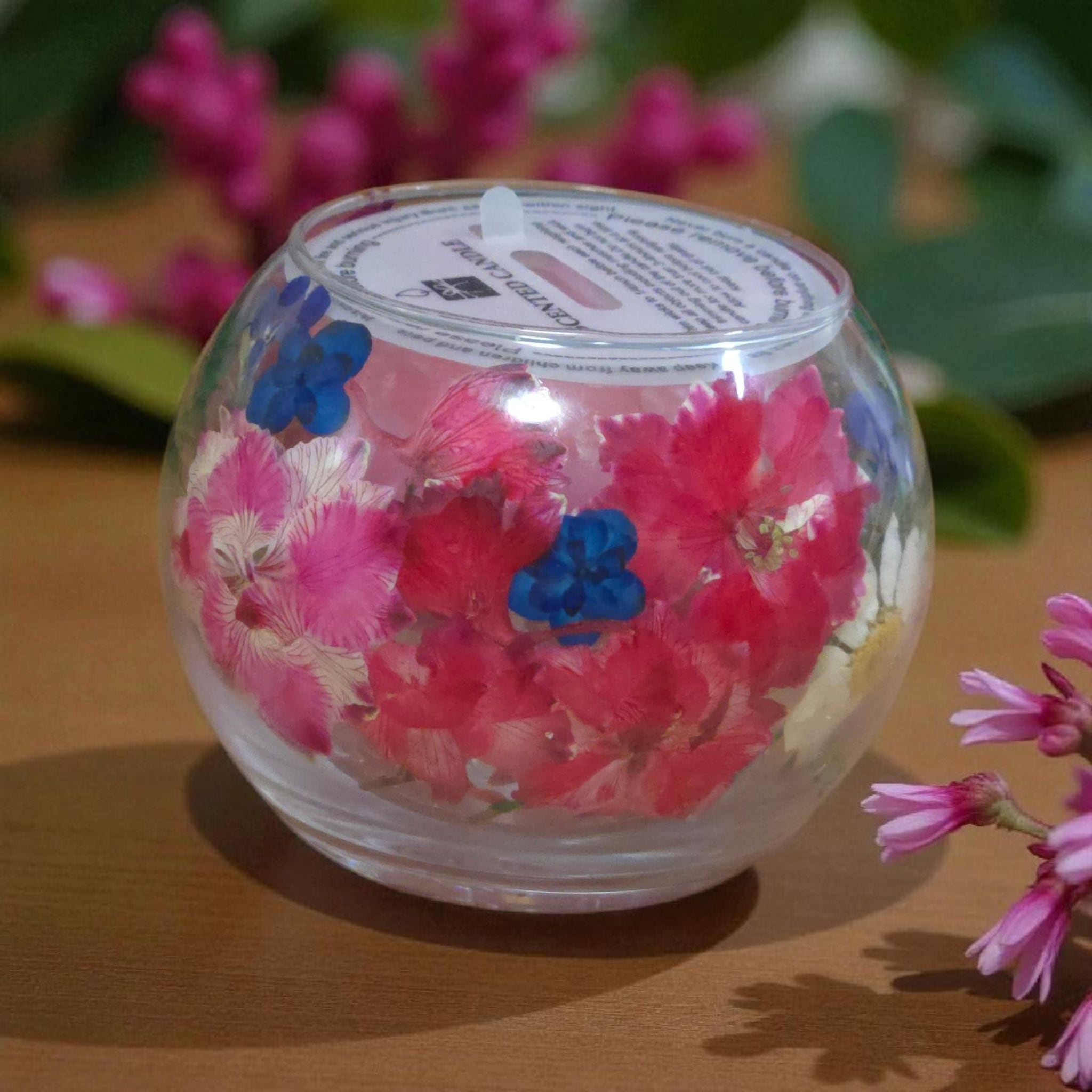 優雅なローズの香りが漂う、押し花入りの美しいジェルキャンドル「プレストフラワーキャンドル」が新登場しました!サイズは高さ約7㌢、直径6㌢。リビングやバスルームなど、さまざまなシーンで心安らぐ時間をお楽しみいただけます。