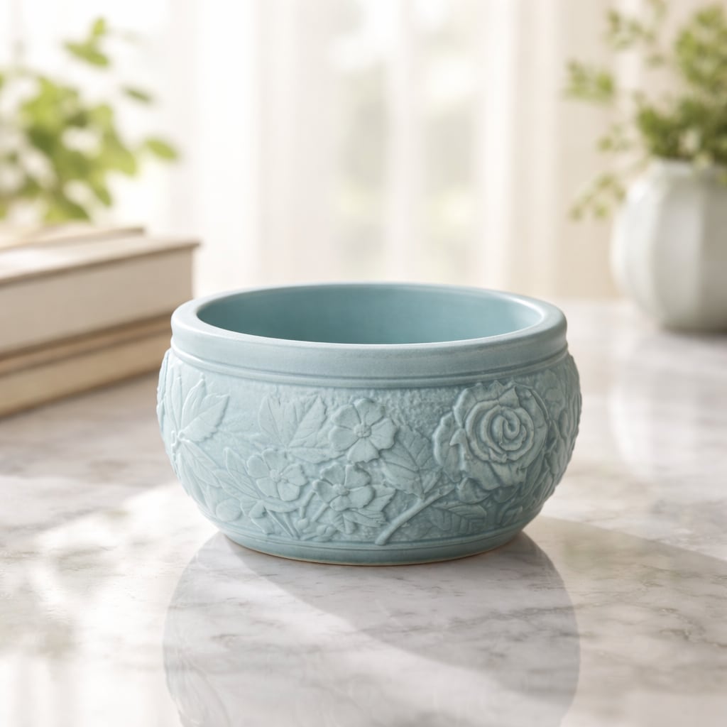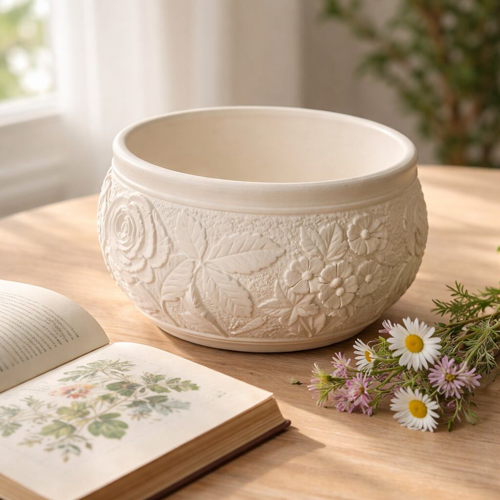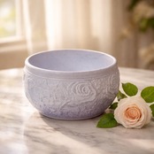 繊細なバラの彫刻が美しい、石膏で作ったハンドメイドの小物容器です。