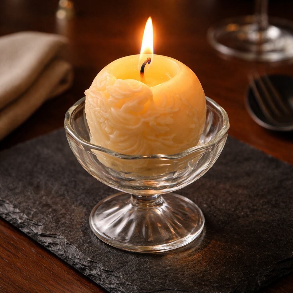 キャンドルを灯す際は、必ず耐熱性のある受け皿の上でご使用ください。